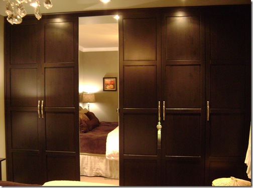 These wardrobes are very large – seven feet tall and the length of the room (approx 10 feet). I have to tippie-toe just to hang things up! Forget getting to the top shelf... that's what tall hubbies are for!